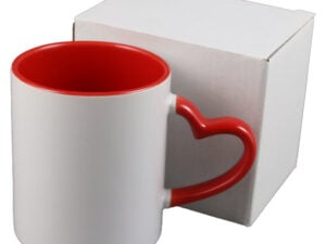 Cana ceramica sublimabila, cu interior si toarta rosie in forma de inima, 300 m, cu cutie individuala