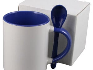 Cana ceramica sublimabila, cu interior si lingurita albastre, 300 ml, cu cutie individuala