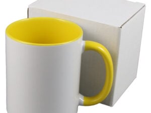 Cana ceramica sublimabila, cu interior si toarta galbena, 300 ml, cu cutie individuala