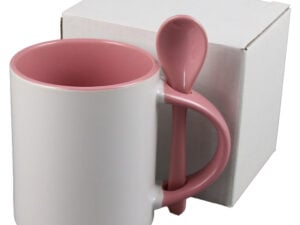 Cana ceramica sublimabila, cu interior si lingurita pink, 300 ml, cu cutie individuala