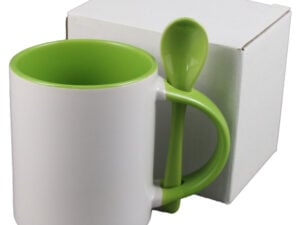 Cana ceramica sublimabila, cu interior si lingurita verzi, 300 ml, cu cutie individuala
