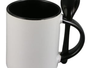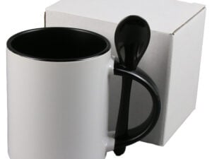 Cana ceramica sublimabila, cu interior si lingurita neagra, 300 ml, cu cutie individuala