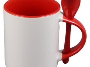 Cana ceramica sublimabila, cu interior si lingurita rosie, 300 ml