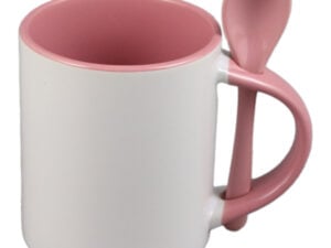 Cana ceramica sublimabila, cu interior si lingurita pink, 300 ml