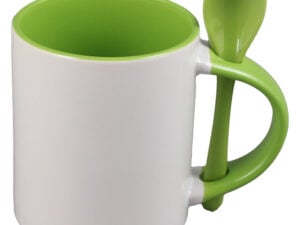 Cana ceramica sublimabila, cu interior si lingurita verzi, 300 ml