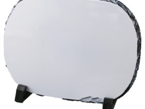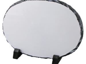 Placa ardezie sublimabila, ovala 19.5×14.5 CM, cu 2 suporturi din plastic + cutie individuala