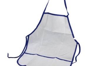Sort sublimabil din textil , cu margine albastra si buzunare, 48×67 cm