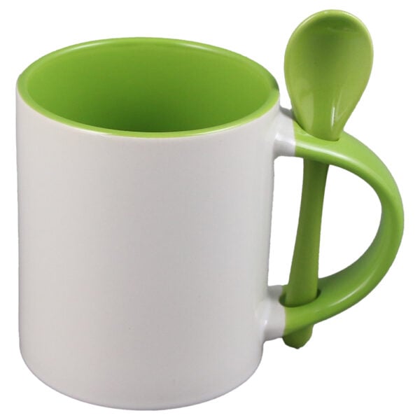 Cana ceramica cu lingurita, verde, 300 ml, sublimabila