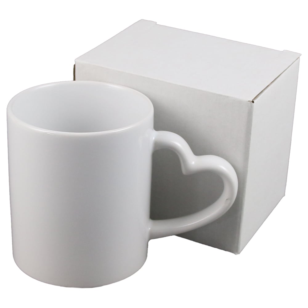 Cana ceramica cu toarta inima, alb, 300 ml, sublimabila