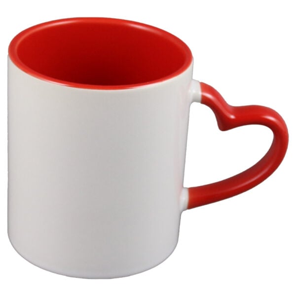 Cana ceramica cu toarta inima, rosu, 300 ml, sublimabila