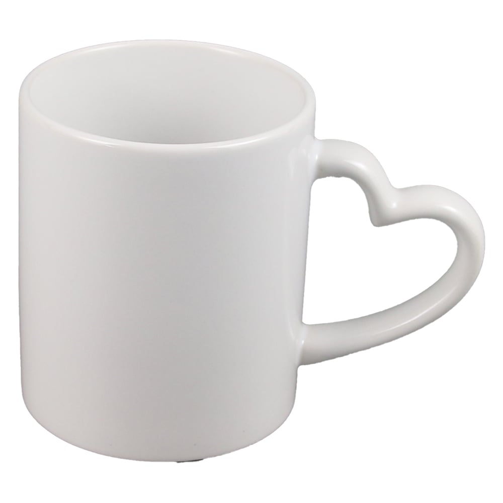 Cana ceramica sublimabila, alba, cu toarta in forma de inima, 300 ml