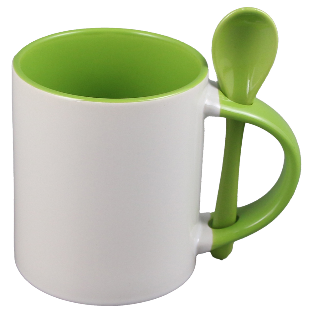 Cana ceramica sublimabila, cu interior si lingurita verzi, 300 ml