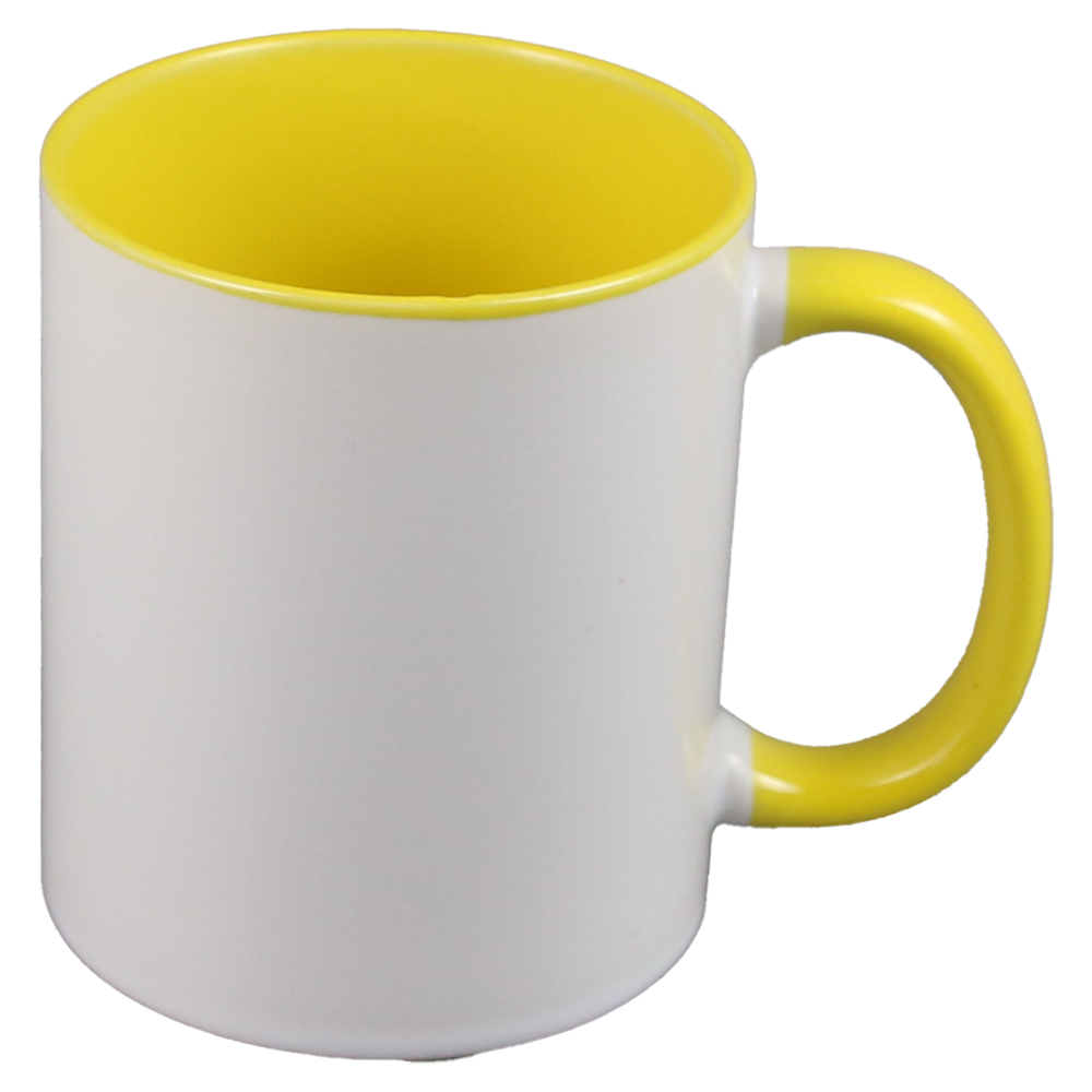 Cana ceramica sublimabila, cu interior si toarta galbena, 300 ml