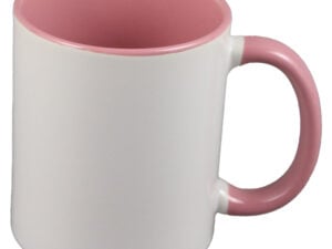 Cana cu interior colorat si toarta colorata. Printul se face pe hartia de sublimare in oglinda. Printul se lipeste pe cana cu ajutorul benzii adezive termorezistenta. (Este recomandat sa fie canile caldute cand se lipeste printul). Cu presa termica pentru