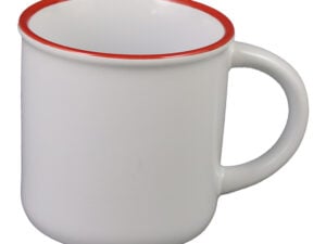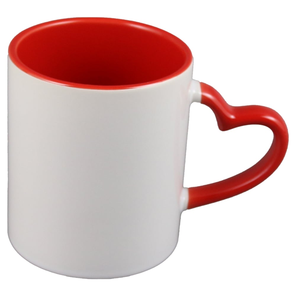 Cana ceramica sublimabila, cu interior si toarta rosie in forma de inima, 300 ml