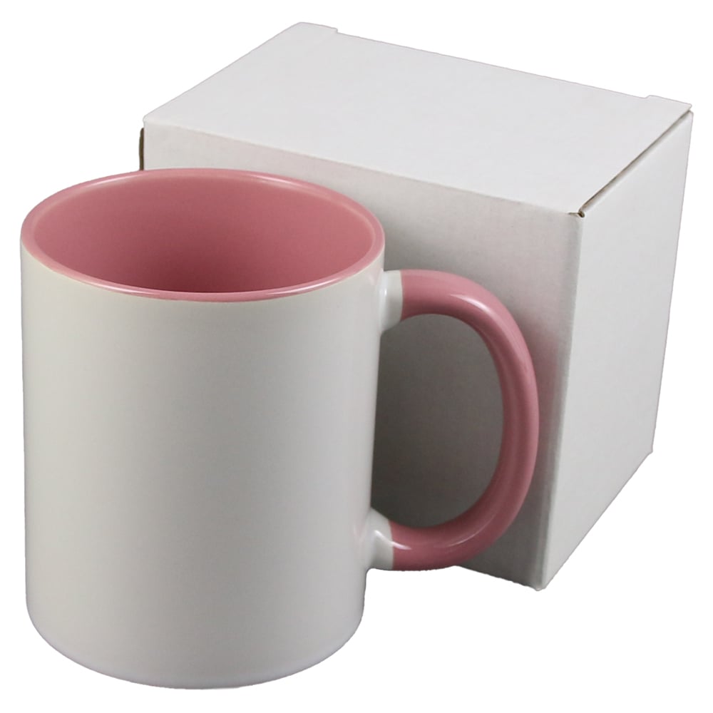 Cana ceramica sublimabila, cu interior si toarta roz, 300 ml, cu cutie individuala