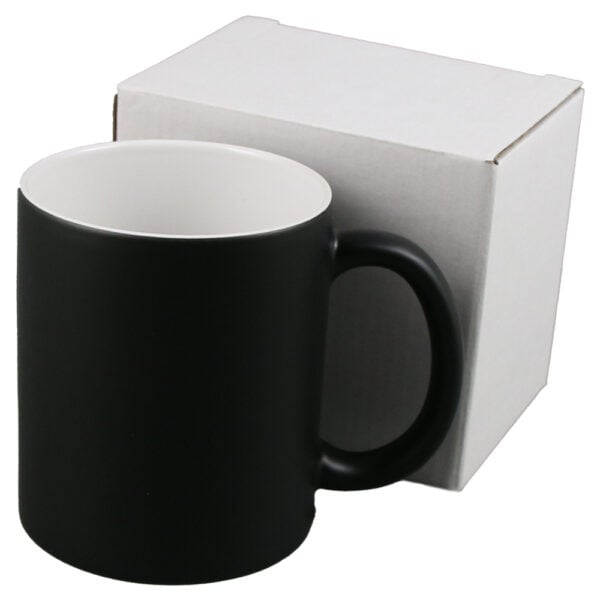 Cana ceramica termosensibila, negru mat, 300 ml, sublimabila + cutie individuala