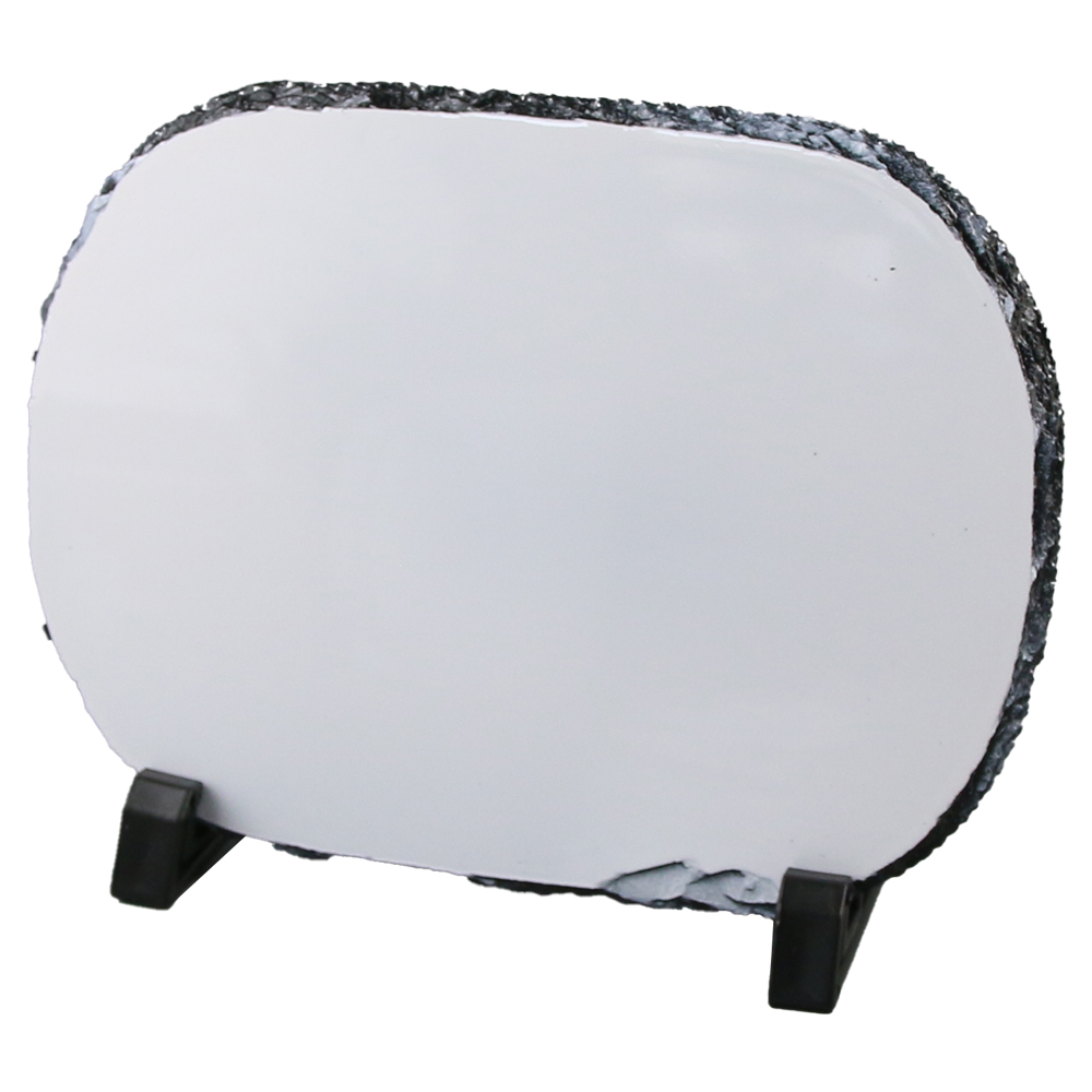 Placa ardezie sublimabila, ovala 19.5×14.5 CM, cu 2 suporturi din plastic + cutie individuala