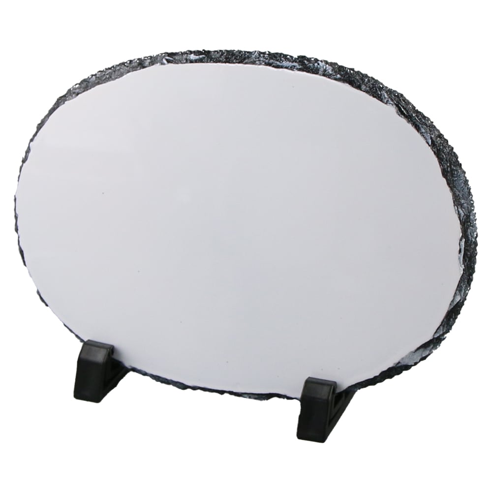 Placa sublimabila din ardezie, cu forma ovala si dimensiunea 19×14 cm, perfecta pentru imprimarea de imagini, texte sau logo-uri prin sublimare. Include 2 suporturi din plastic pentru expunere pe birou sau raft si cutie individuala, ideala pentru cadouri.